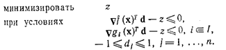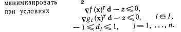 Чтобы найти вектор d, удовле творяющий неравенствам для , естественно мини мизировать максимум из и для . Обозначим этот макси мум через z. Вводя нормирующие ограничени я Для каждого j, получим следующую задачу для нахождения направления.