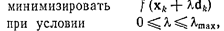 Только что было показано, как строить возможное направление спуска или убедиться, что текущая точка удовлетворяет условиям Куна—Таккера. Пусть теперь х k —текущая точка, а dk -возможное направление спуска. В качестве следующей точки xk+1 берется, где длина шага К& определяется из решения следующей задачи одноме рной мини мизации: