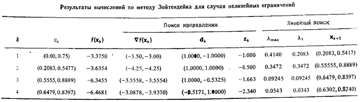 Результаты вычислени й по методу Зойтендейка для случая линейных ограничений