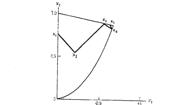 Рис. 5. Пои ск решения методом Зойтендейка (случай линейных ограничений).