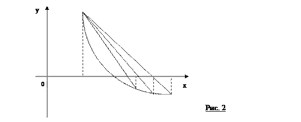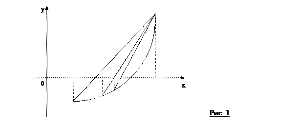 можно заменить хордой и в качестве приближенного значения корня принять точку пересечения с осью абсцисс. Рассмотрим случай (рис.1), когда первая и вторая производные имеют одинаковые знаки, т.е.