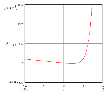 Здесь fx:=exp(x)-10*x – наша заданная функция.