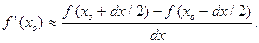 dy:=fx(x0+dx/2 -fx(x0-dx/2) – вычисление первой производной в точке x0 ,