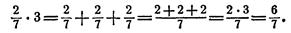 Следующим действием изучается умножение дроби на целое число. Умножение дроби на целое число определяется так же, как умножение целых чисел.