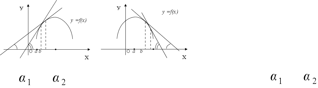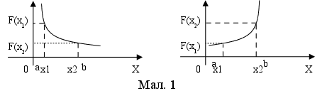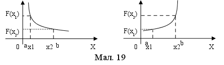 В першому випадку функція f(x) є зростаючою на проміжку а; b, в другому - спадною. Потрібно спитати учнів, а яким же чином веде себе функція, коли f(x) при переході через деяку точку х0 змінює свій знак.