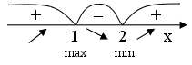 Це буває лише тоді, коли в точці х0 функція приймає своє найбільше або найменше значення. Якщо похідна змінює свій знак з “+” на “-” (спочатку функція зростала, а при переході через точку х0 почала спадати), то х0- є точкою максимуму, значення функції в цій точці є максимумом функції. Інакше, якщо при переході через точку х0 похідна змінила свій знак з “-” на “+”, то х0 - є точкою мінімума, а значення функції в цій точці – мінімумом функції. Ці точки називають екстремальними точками функції.