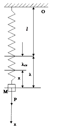 Пусть груз весом Р подвешен на вертикальной пружине, длина которой в естественном состоянии равна