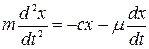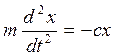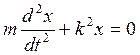 Полученное уравнение определяет так называемые свободные колебания груза. Оно называется уравнением гармонического осциллятора. Это линейное дифференциальное уравнение второго порядка с постоянными коэффициентами. Его характеристическое уравнение:
