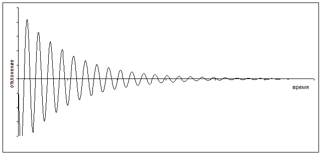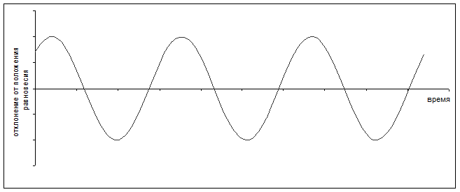График зависимости отклонения от положения равновесия от времени имеет вид:
