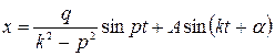 Это решение определяет свободные колебания, которые будут затухающими. Для отыскания вынужденных колебаний ищем частное решение в виде