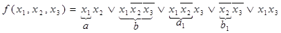 2.Получение минимальной формы записи (цель – получение минимального числа символов для записи всей функции сразу).