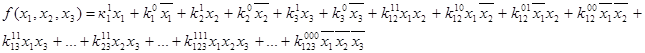 На основании теоремы Жигалкина любую ФАЛ можно представить в виде (рассмотрим на примере трех переменных):
