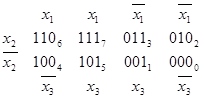 б) Форма преобразуется и упрощается с использованием аксиом алгебры логики. При этом, в частности, выявляются в исходном ДСНФ так называемые соседние min-термы, в которых есть по одной не совпадающей переменной.
