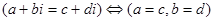 Два комплексных числа a + bi и c + di считают равными тогда и только тогда, когда равны между собой соответственно их действительные и мнимые части, т. е. a = с, b = d: