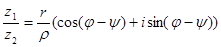 Формула (26) позволяет найти модуль и аргумент комплексного числа, обратного данному числу. Полагая в этой формуле z1 = l = l (cos0 + i sin0), z2 = z = r (cosφ + i sinφ), получаем