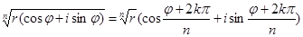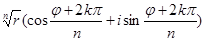 , т. е. значение аргумента при этом значении k отличается от значения аргумента при k = r на число, кратное 2π. Следовательно, при этом значении k получаем такое же значение корня, как и при k = r, т. е. при значении k=0, 1, 2, ..., n – 1.