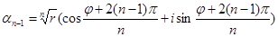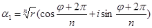 Полученные формулы определяют модуль ρ и аргумент числа α – корня степени n