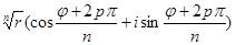 sinψ), где r = |z|, φ = Argz; ρ = |α|, ψ = Αrgα. Обозначим корень n-й степени из комплексного числа z через