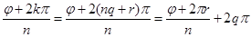 ρn = r, nψ = φ + 2kπ (k = 0, ± 1, ± 2, …), откуда