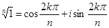 Рассмотрим важный частный случай извлечения корня, а именно извлечения корня n-й степени из числа 1. Представляя это число в тригонометрической форме 1=cos0+i sin0 и применяя формулу (34), получаем n значений корня из единицы: