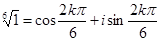 Например: найдем все значения корня шестой степени из единицы. По формуле (35), которая в данном случае принимает вид