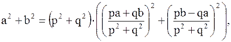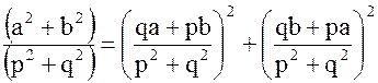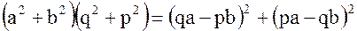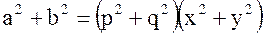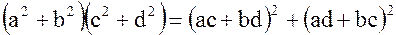 Предложение 3 . Произведение двух чисел, каждое из которых является суммой двух квадратов, представимо в виде суммы двух квадратов.
