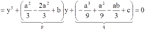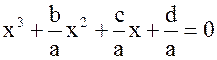 Таким образом, можно сказать, что решение любого кубического уравнения сводится к решению кубического уравнения со старшим коэффициентом, равным 1, т.е. уравнения вида