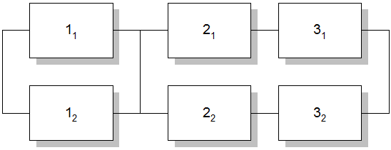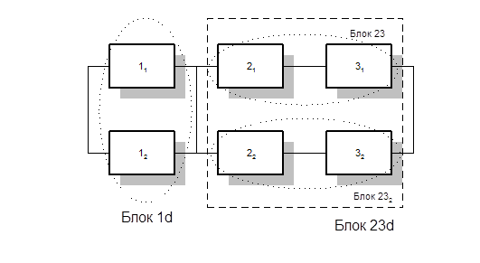 Будем использовать алгоритм последовательного структурного укрупнения. Суть метода состоит в последовательном преобразовании системы. Преобразуем параллельную часть структуры системы, используя формулы дублирования для нагруженного резерва: