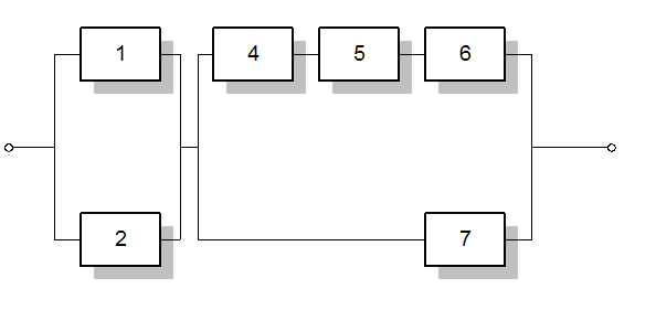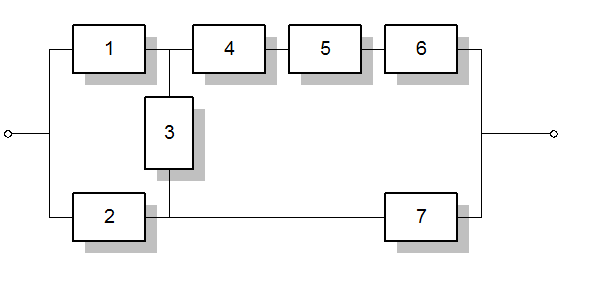 Будем использовать алгоритм последовательного структурного укрупнения. Суть метода состоит в последовательном преобразовании системы. Преобразуем заданнную структуру в структуру с последовательным соединением элементов. При этом будем использовать метод разложения булевой функции относительно «особого» элемента.