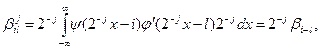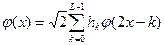 Из свойства 4’ непосредственно следует, что, во-первых, функция j может быть представлена в виде линейной комбинации базисных функций пространства V-1 . Так как функции { j j, k ( x)=2- j/2 j(2- j x- k)} k Î Z образуют ортонормальный базис в Vj , то имеем