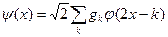 Функция j - так называемая масштабирующая (скейлинг-) функция. С ее помощью можно определить функциюy - вейвлет - такую, что набор { y( x- k)} k Î Z образует ортонормальный базис в W0 . Тогда