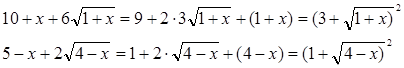 10. Метод выделения полного квадрата в подкоренных выражениях при решении иррациональных неравенств, либо разложения подкоренного выражения на множители.