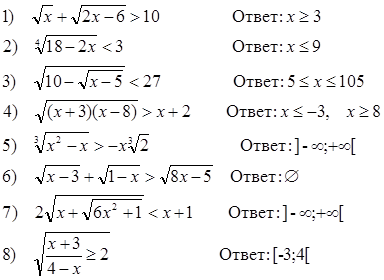8. Решение иррациональных неравенств, способом ведения новой переменной.