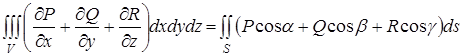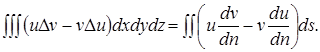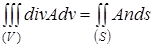где слева стоит интеграл по объему, а справа интеграл по граничной поверхности, причем
