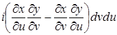 на бесконечно малые криволинейные четырехугольники. Тогда интеграл можно получить, складывая сначала те его элементы, которые отвечают бесконечно узкой криволинейной полосе, а затем, продолжая суммировать элементы полосами, пока они все не будут исчерпаны. Несложный подсчет дает для площади, которая с точностью до малых высшего порядка может рассматриваться как параллелограмм, выражение