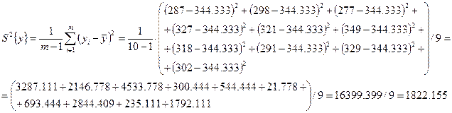 Для планирования объёма выборки из В1 выбираем 3 значения: 314, 322, 321.