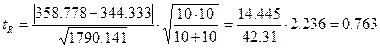 2.3 Проверка гипотезы о равенстве генеральных средних выборок В2