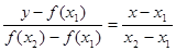 2. Проведем хорду АВ, соединяющую концы кривой y = ¦(x), соответствующие абсциссам x1 и x2 . Абсцисса a1 точки пересечения этой хорды с осью ОХ и будет приближенным значением корня. Для разыскания этого приближенного значения напишем уравнение прямой АВ, проходящей через две данные точки A(x1 ;¦(x1 )) и B(x2 ; ¦(x2 )), в каноническом виде: