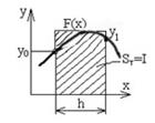 Из рис. 1.2 следует, что площадь криволинейной трапеции приближенно заменяется площадью многоугольника, составленного из n прямоугольников. Таким образом, вычисление определенного интеграла сводится к нахождению суммы n элементарных прямоугольников.
