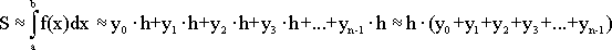beginx:=xb+i*h; s:=s+f(x)*h; end;