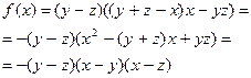 Для разложения на множители второго множителя используем тот же приём, но в качестве переменной рассмотрим