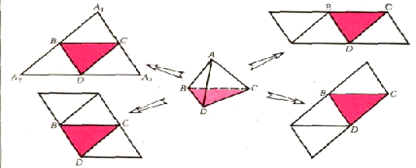 Разрежем тетраэдр АВСD по рёбрам АВ, АС, АD и рассмотрим развёртку А1