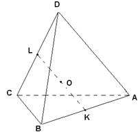 - Пусть К и L — середины ребер А В и CD, О — центр тяжести тетраэдра, т.e. середина отрезка KL.Так как О — центр описанной сферы тетраэдра, то треугольники АОВ и COD равнобедренные, с равными боковыми сторонами и равными медианами ОК и OL. Поэтому треугольники АОВ = СОD, а значит, АВ =CD. Аналогично доказывается равенство других пар противоположных ребер.