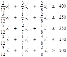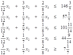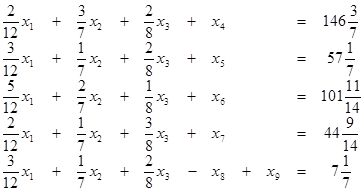 В канонической форме задачи линейного программирования необходимо, чтобы все компоненты искомого вектора Х были неотрицательными, а все остальные ограничения записывались в виде уравнений. Т.е. в задаче обязательно будут присутствовать условия вида (2.3) и 8 уравнений вида (2.2), обусловленных неравенствами (2.5), (2.6).