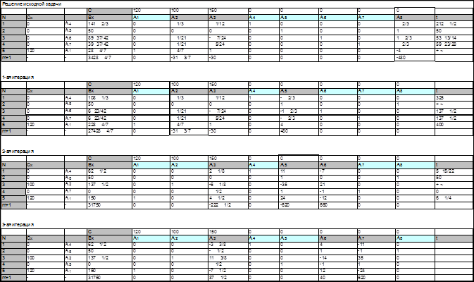 ) соответственно. Нулевая итерация заканчивается заполнением нулевой дополнительной строки вспомогательной таблицы с оценками