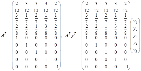 Теперь исходная задача (2.1) - (2.3) в канонической форме может быть записана в матричном виде следующим образом.