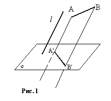 и пересекающие плоскость α в точках A’, B’. Отрезок A’ B’ – проекция АВ на плоскость α (рис.1). Обозначается A’ B’ =пр α