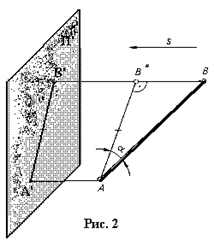 В этом случае нетрудно установить соотношение между длиной натурального отрезка и длиной его проекции. Если отрезок AB образует с плоскостью проекций угол α, то, проведя AB*║A’ B’ (рис.2), получим из прямоугольного треугольника AB*B, что AB*=ABcos α или A’ B’= ABcos α.