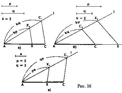 одного из концов отрезка относительно другого. На рис. 6, в показаны оба варианта этих построений. Отрезки А1