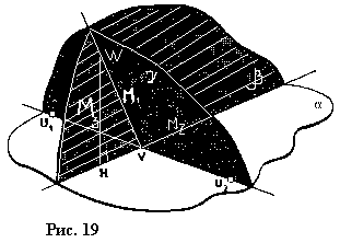 Таким образом, построение точки в данной плоскости сводится к двум операциям: построению в плоскости вспомогательной прямой и построению точки на этой прямой.